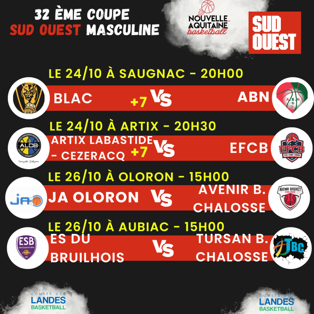 Accueil Dernières Actualités COUPE SUD-OUEST – PROGRAMME 32èmes Lire plus EXPAT’ LANDAISE : MATHILDE DOMENGER Lire plus PROGRAMME 16èmes COUPE INTERSPORT Lire plus 100% CLUB BASKET – #8 – ICI GASCOGNE – Lire plus Charger Plus 0 LICENCIÉS 0 CLUBS 0 MATCHS PAR WEEK-END Nos Partenaires Précédent Suivant