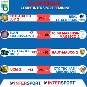 RESULTATS 1/4 COUPE INTERSPORT Retrouvez ci-dessous les résultats des 1/4 de finales de la...Read More