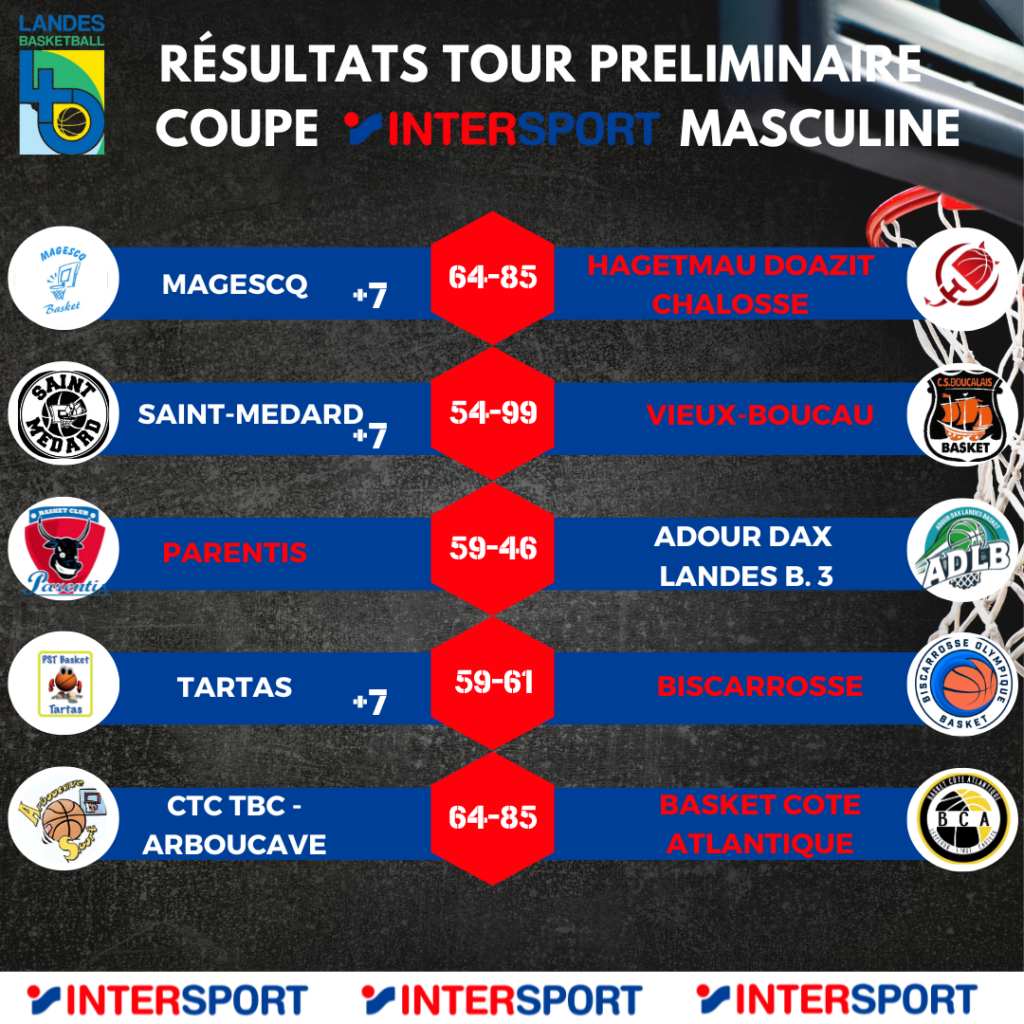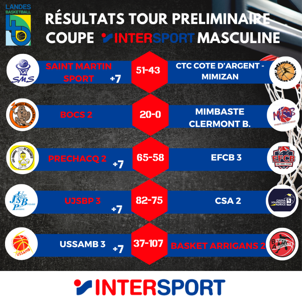 C’était ce week-end! Retrouvez ci-dessous tous les résultats de ce tour préliminaire de Coupe Intersport masculine.