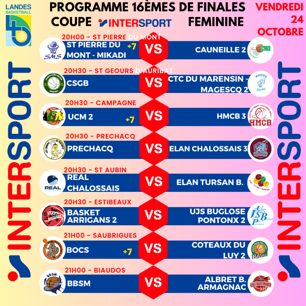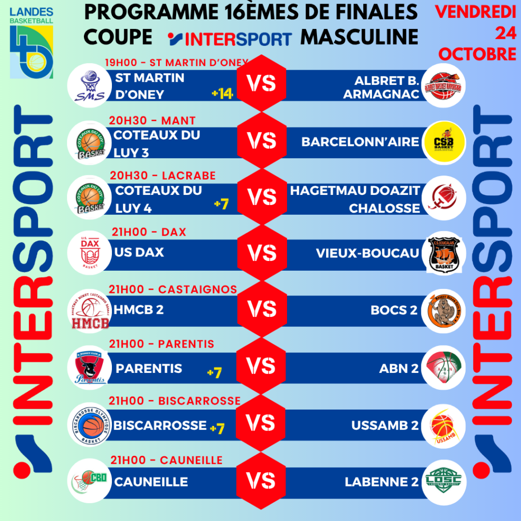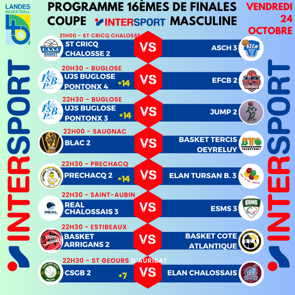 Ce Vendredi 24 Octobre auront lieu les 16èmes de finales Coupe Intersport.