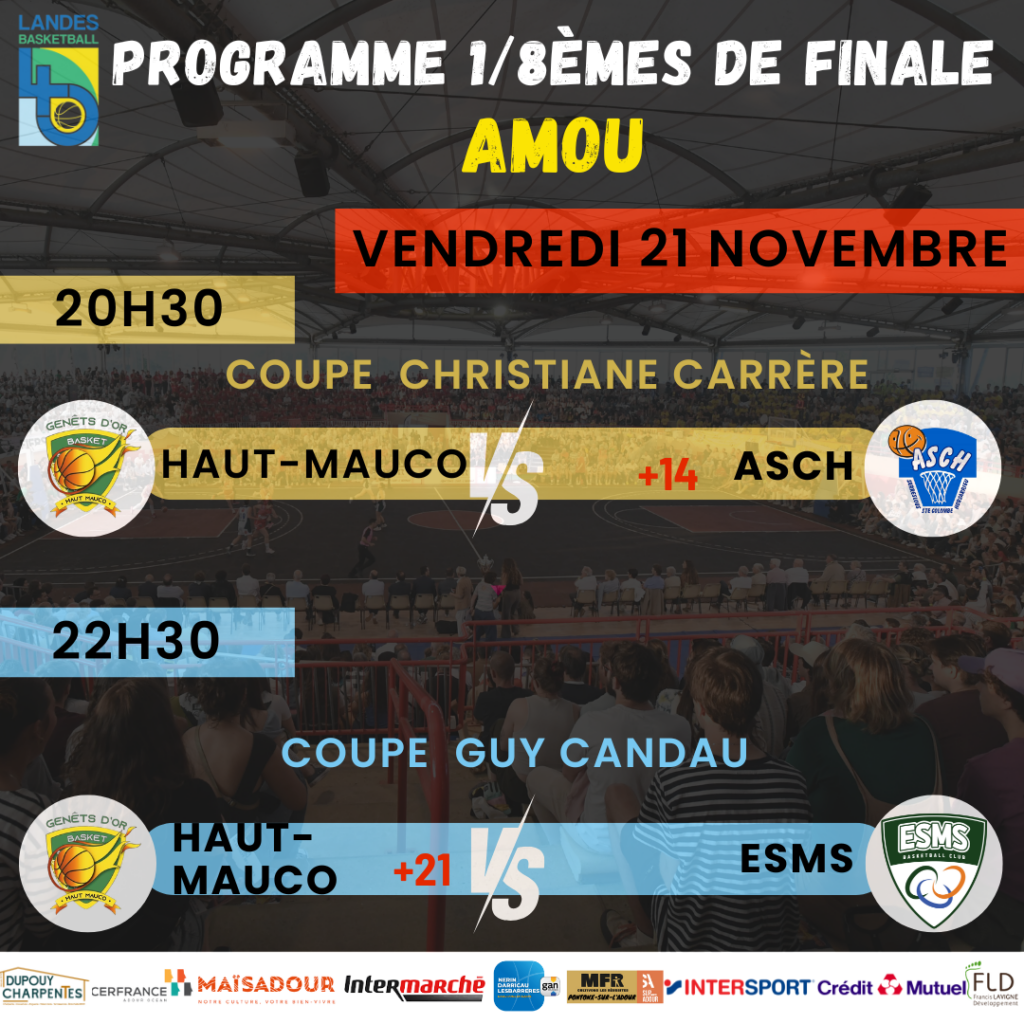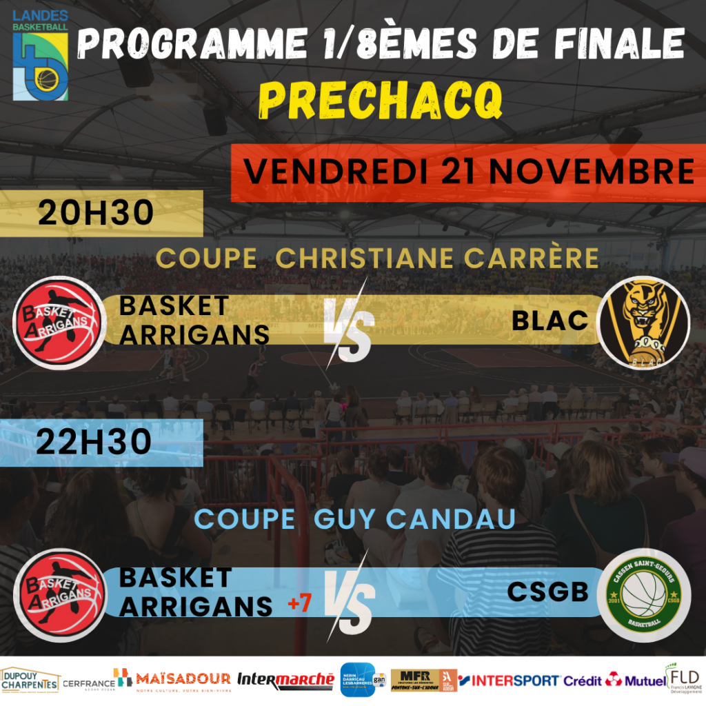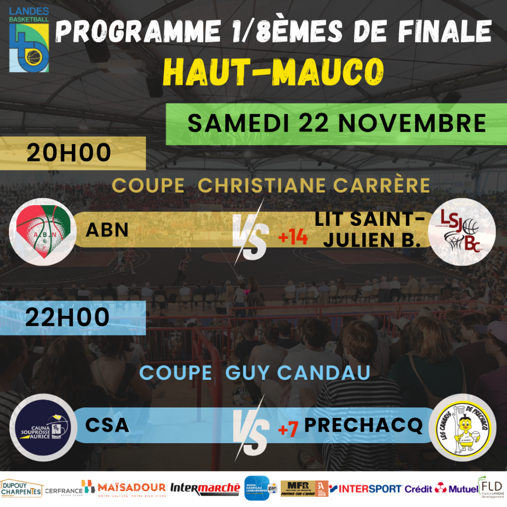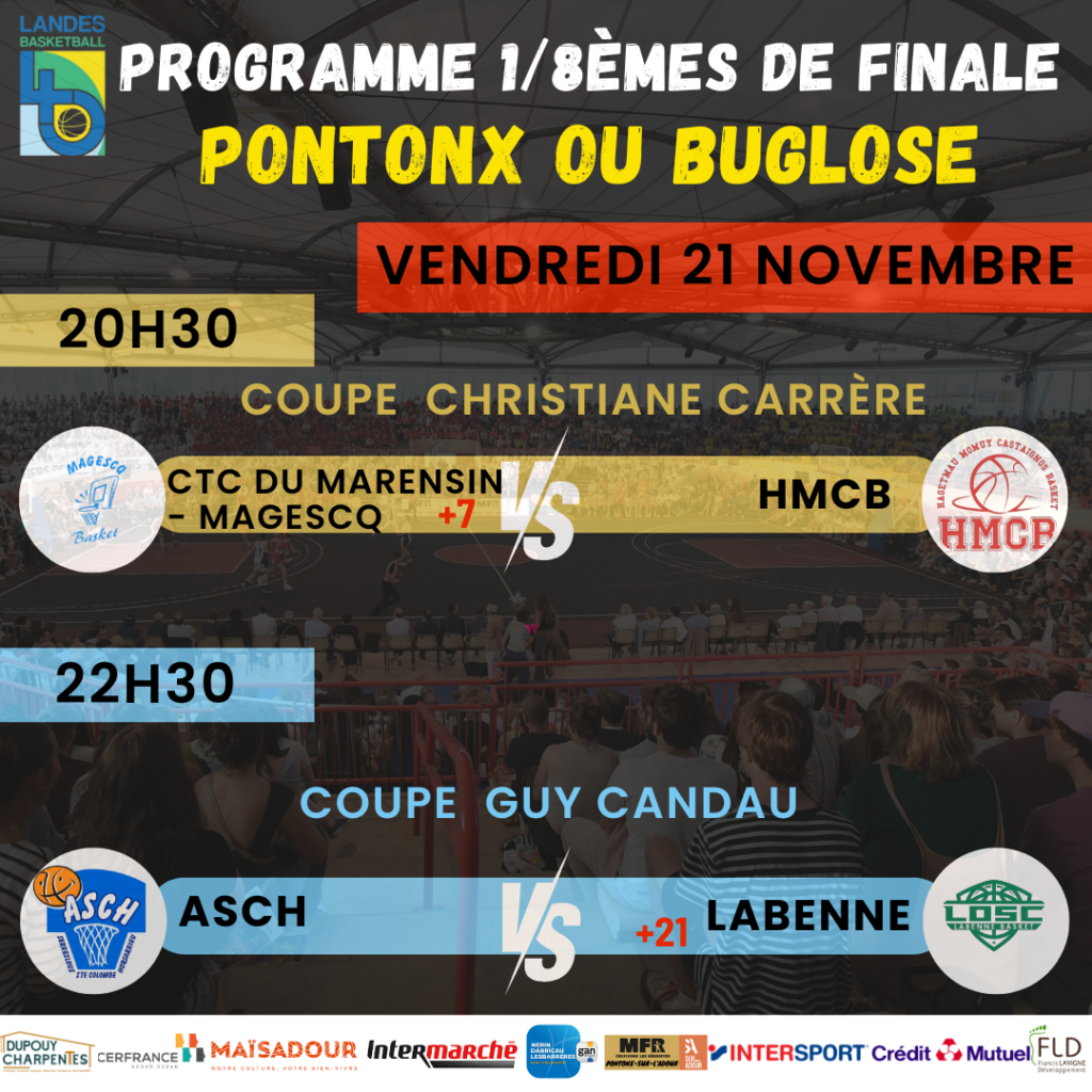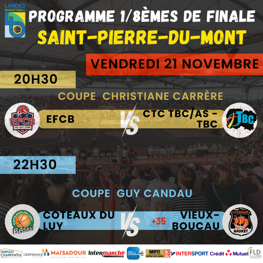 C’est officiel! Veuillez trouver ci-dessous le programme complet des 1/8èmes de finales Coupe Guy Candau et Coupe Christiane Carrère.