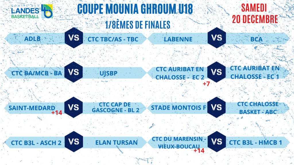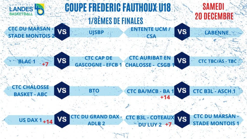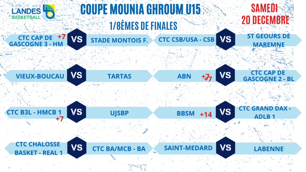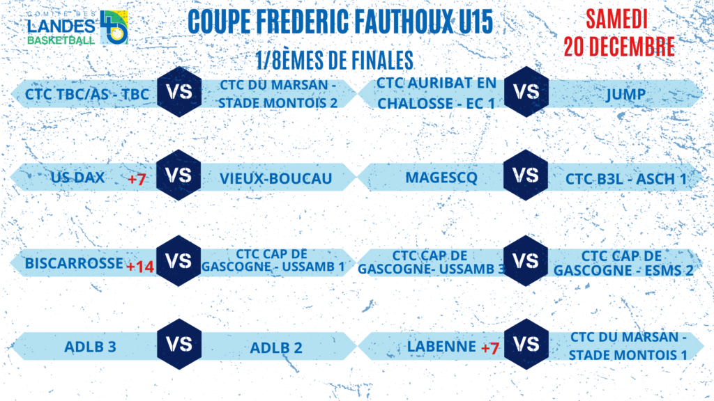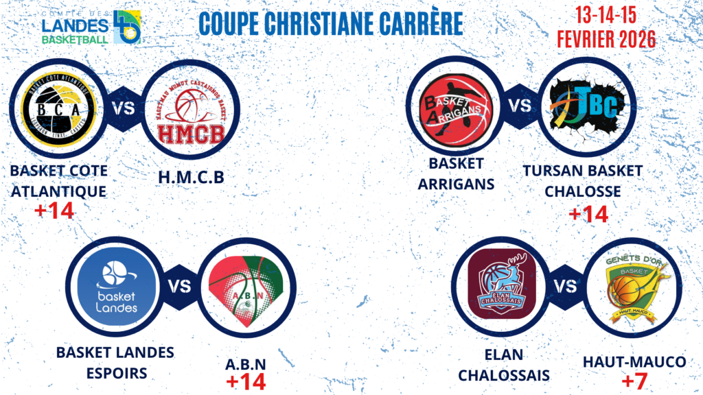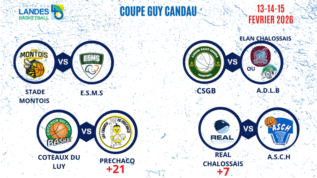 • 1/4 de finales Coupe des Landes Coupe Carrère & Coupe Candau => Week-end du 13-14-15 Février