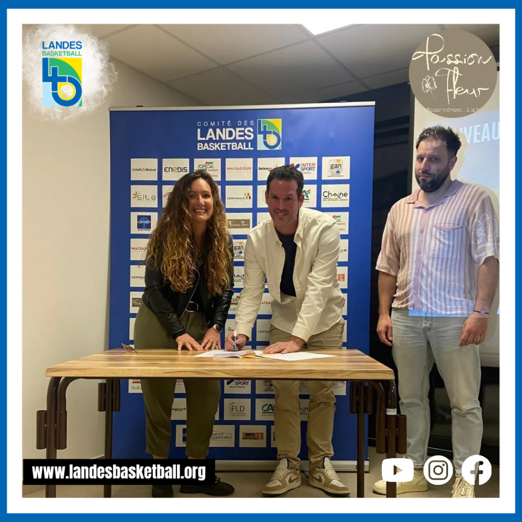 Présenté lors des derniers tirages, Passion Fleur sera le partenaire exclusif sur les camps d’été dès Juillet 2026. La convention de partenariat fut signée jeudi dernier entre DYLAN LACROIX (directeur) & ARNAUD PELLOT (responsable boutique Dax) et BARBARA CANLORBE (Présidente du Comité).
