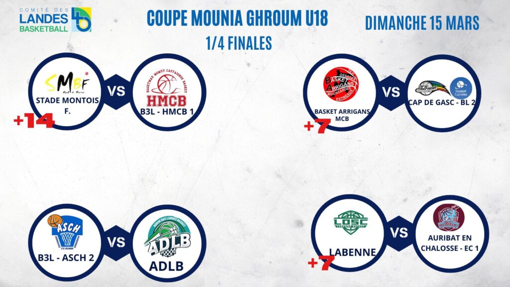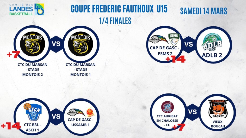 – Les 1/4 de finales Coupe GHROUM et Coupe FAUTHOUX se joueront le week-end du 14-15 Mars.