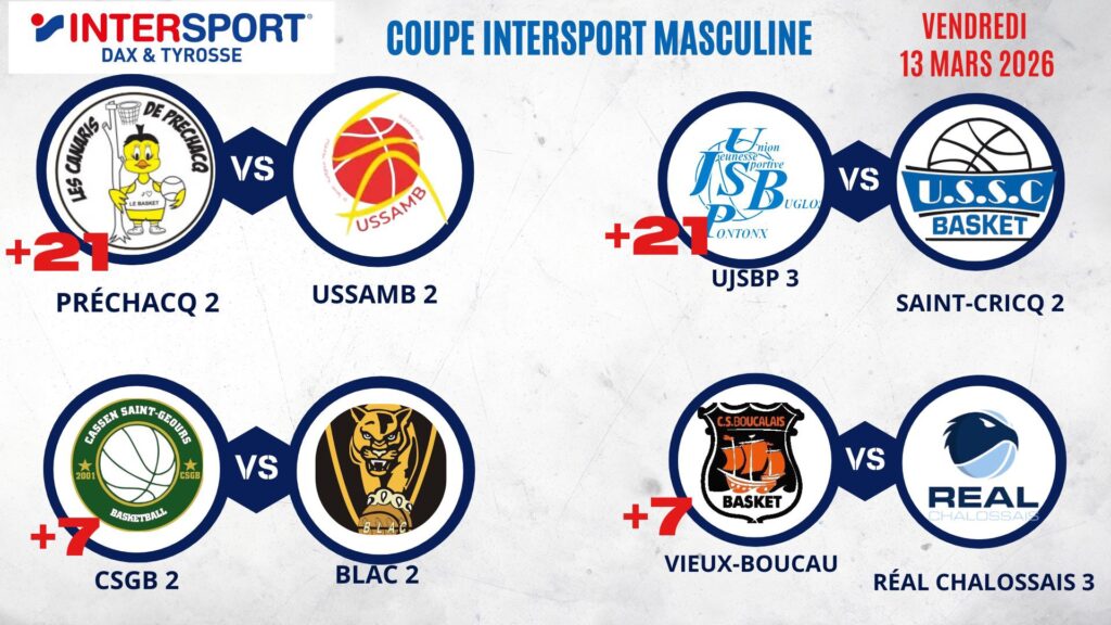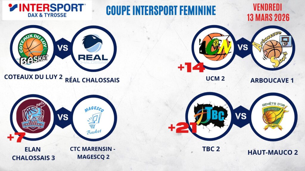 – Les 1/4 finales Coupe INTERSPORT auront lieu le Vendredi 13 Mars & Samedi 14 Mars