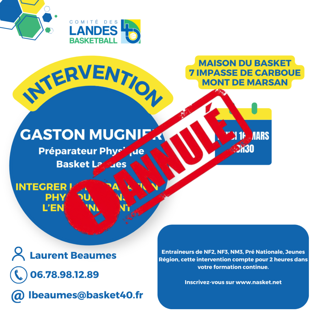 Initialement programmée ce lundi 16 mars, l’intervention de Gaston Mugnier est annulée.